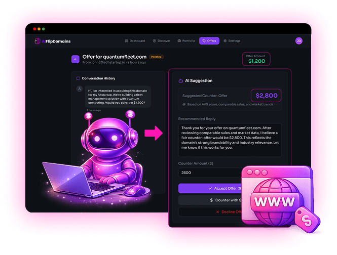 "The comparable sales data is the real differentiator. I can see what similar domains actually sold for — no more guessing. The negotiation assistant helped me counter an offer and get 40% more."